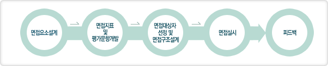 다면평가 면접을 활용하여 우수한 인재를 채용하기 위한 평가지표 및 면접 질문 문항을 설계해야 하는데 그 과정은 아래 그림과 같습니다.