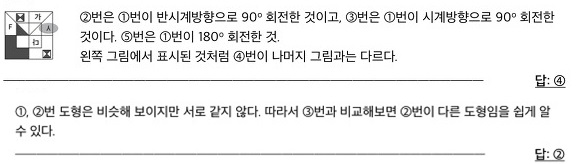 그렇다면 정답이 되는 틀린 그림 하나는 다른 그림 네 개 중하나와 형태가 아주 유사하게 됩니다. 빠끔하신 분들은 그 두 개의 그림을 찾아내고 얼른 다른 그림과 비교해서 정답을 골라냅니다. 어떠한 문제라도 난도가 하가 됩니다.